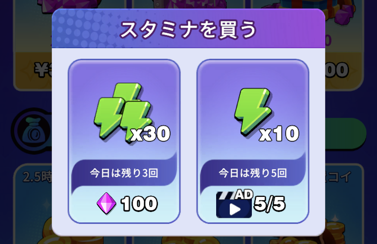 ダイヤはスタミナの購入や掃討にたくさん必要になる他、後半はコインをダイヤで購入して装備を強化することも増えてきます。
